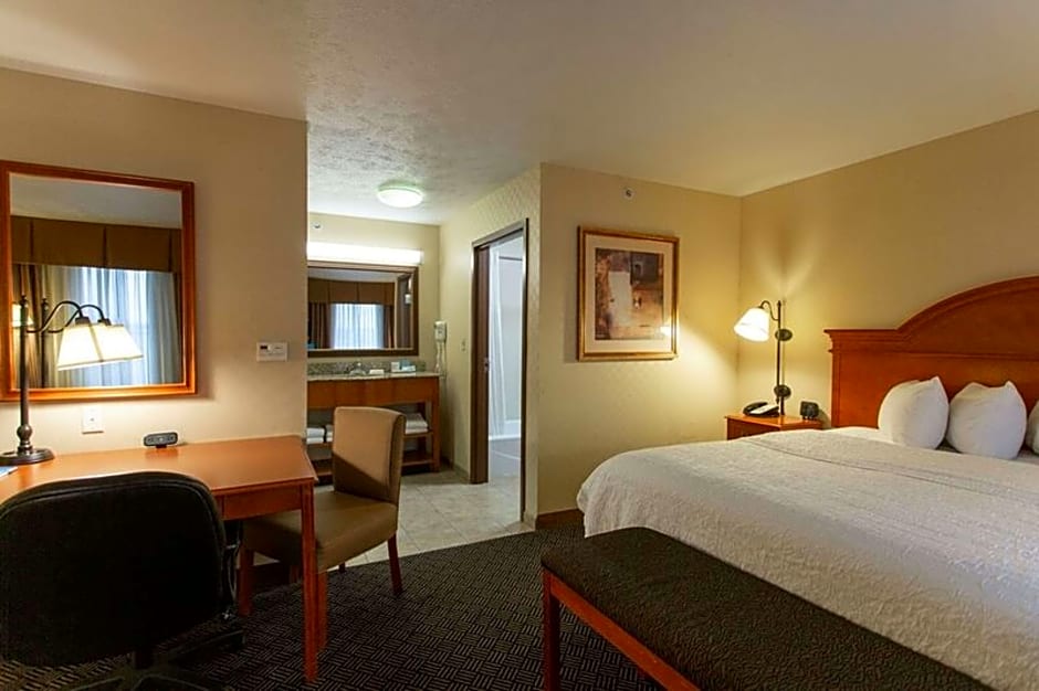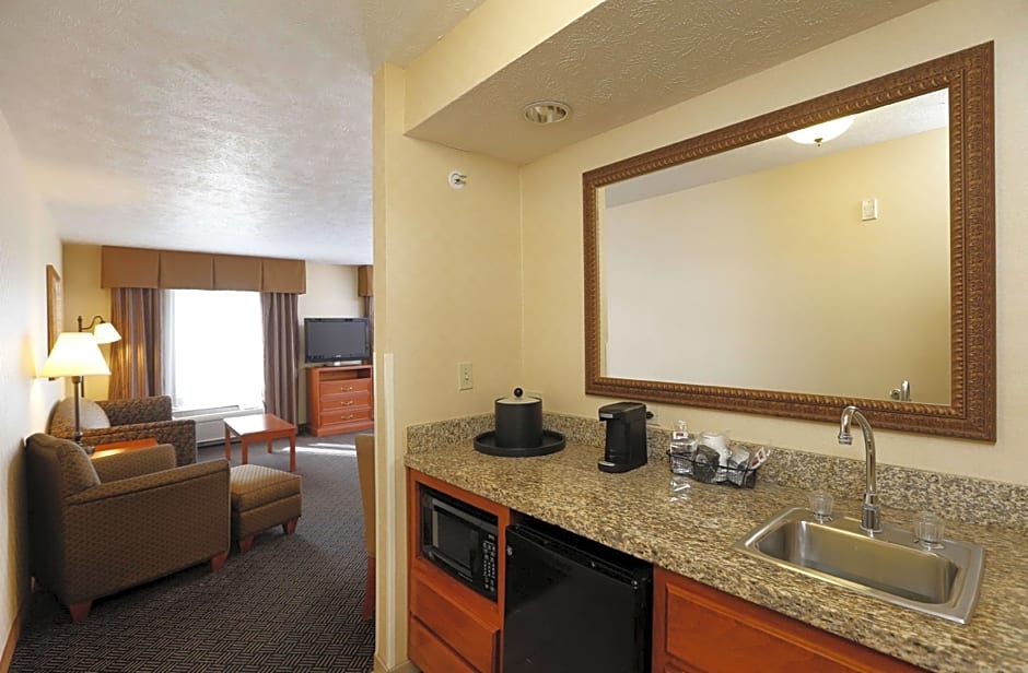 This room features WiFi, a 55-inch flat-screen TV, a microwave and a small refrigerator. A vanity, whirlpool bath and a fireplace are provided as well.
