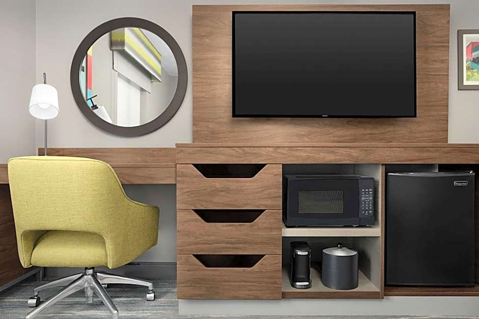 This room features WiFi, a 55-inch flat-screen TV, a microwave and a small refrigerator. A desk and sofa bed are provided as well.
